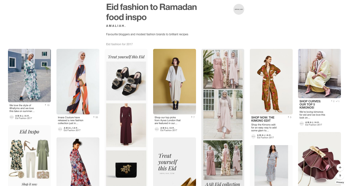 Amaliah stepped in to support the platform in curating boards around core themes – fashion, food, and celebration all for Eid. We provide creative ideas to engage Muslim audiences, while backed by an authentic voice.
