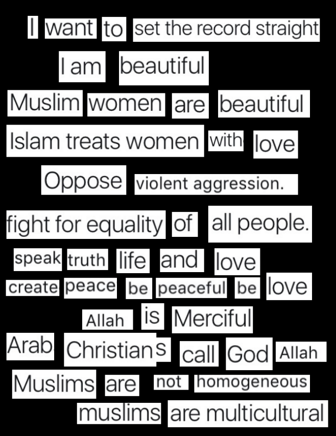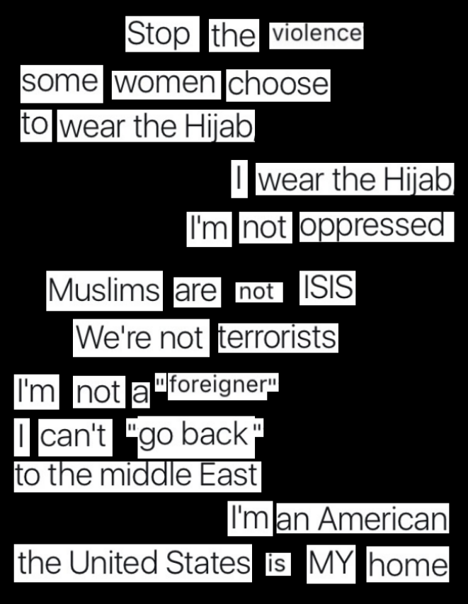 Ever since Trump was elected into power, the hate he has generated against Islam and Muslims has given way for many to feel confident enough to attack Muslims like Azmia. Azmia made the decision to turn the hate into something positive, and created a beautiful poem reflecting the truth about her faith, by ironically making use of the hate tweets sent to her. Through her poetry, she creates a narrative about Islam that is starkly different to the one painted by many.