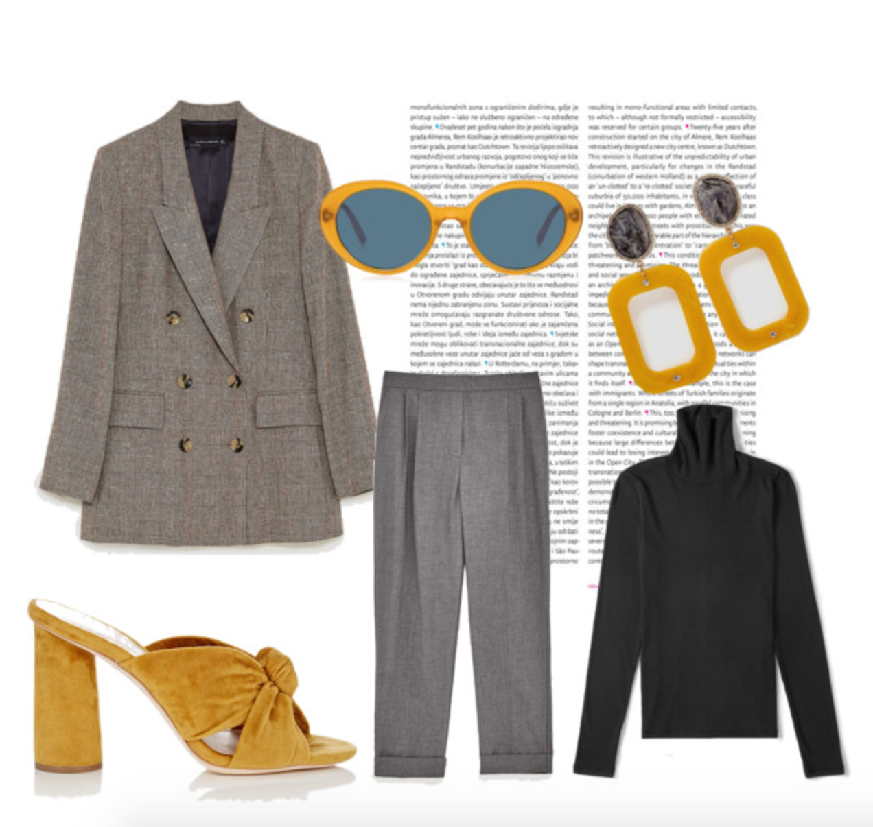 Check out our inspiration board featuring this checked suit from Zara with pops of mustard accessories.