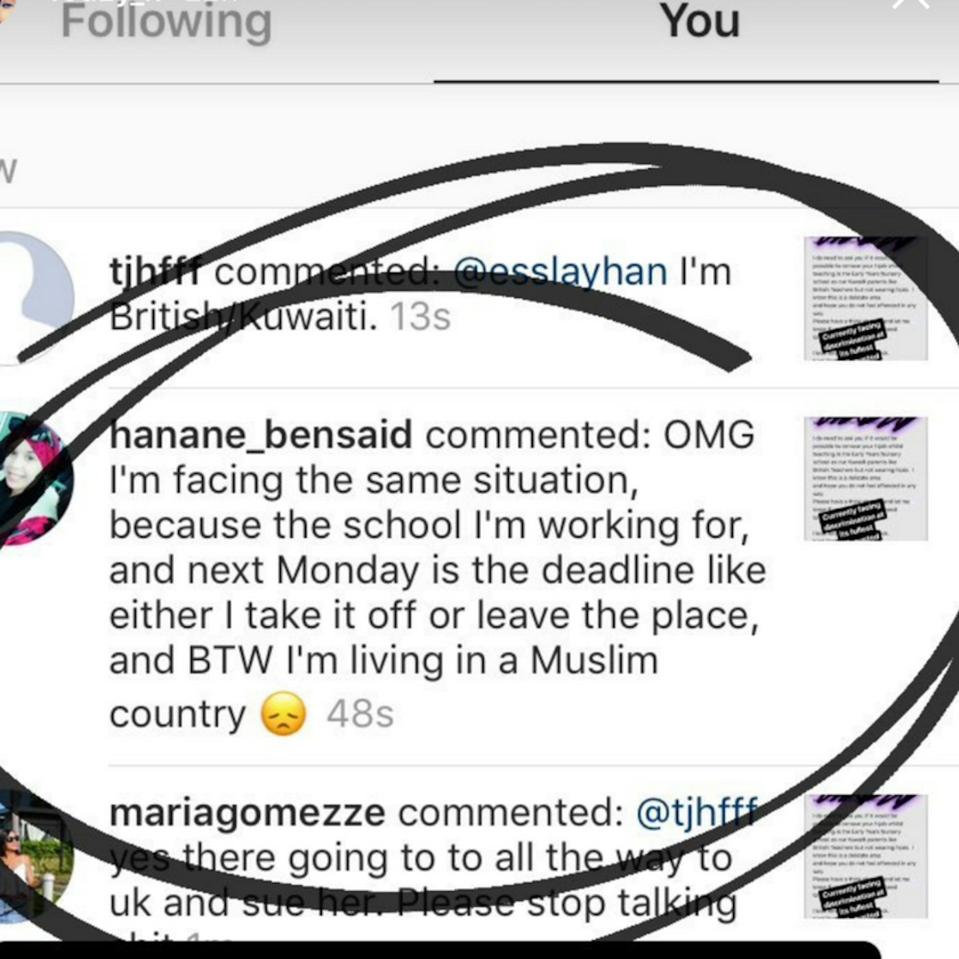 I'm actually disgusted that a school in Kuwait, a Muslim country asked my cousin to take her hijab off in order to work for them. pic.twitter.com/UTykkm3tC8