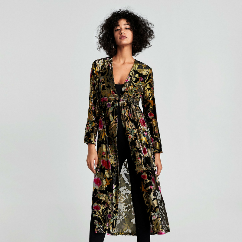 The velvet trend everyone loves is back this season! I am currently obsessing over this floral velvet kimono from Zara. Perfect for any evening soiree, over a simple black outfit and paired with some gold heels. It even has pockets. What more could you want?