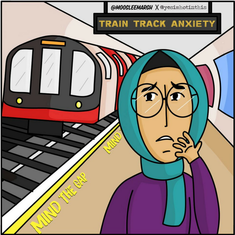 Over the past few years, we have seen the emergence of a number of Muslim illustrators who use their work to highlight real issues faced by Muslim communities. We are delighted to see two of our favourites come together and collaborate to talk about ‘train track anxiety’.
