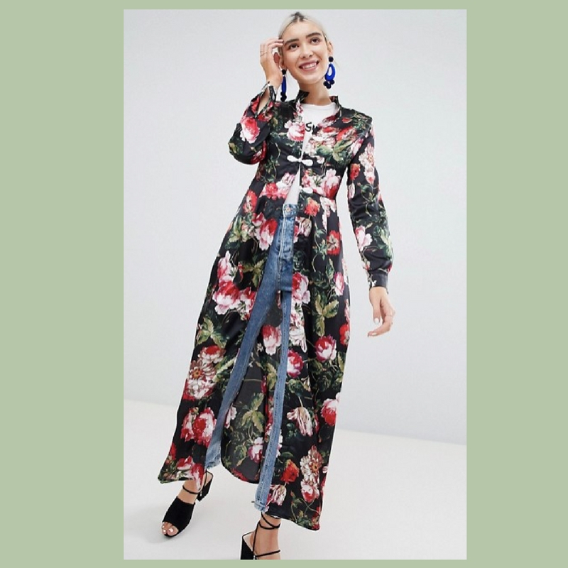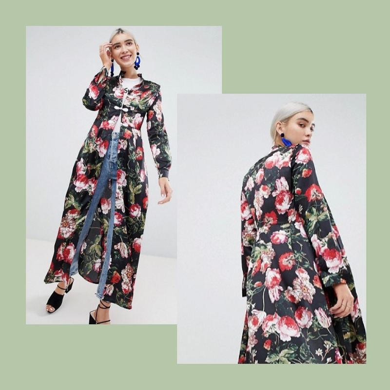 Surely we won’t be getting any more snow in the UK and spring officially started here on the 20th of March so that’s an excuse to get our spring wardrobe in order. We love this floral open ‘abaya’ like maxi dress, the delicate clasp detail also makes this perfect for a day out or dinner in the evening for date night with your ladies or the other half.