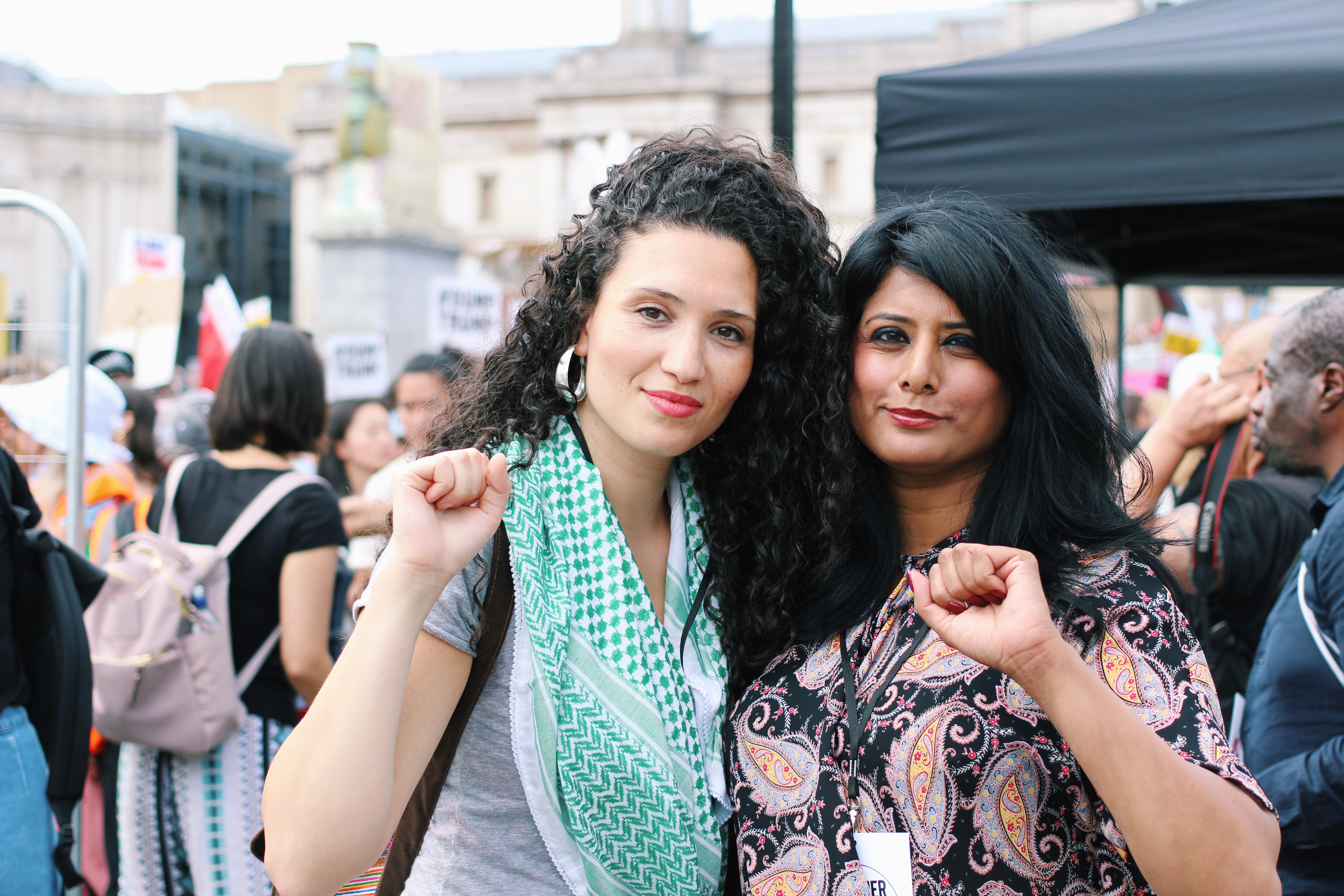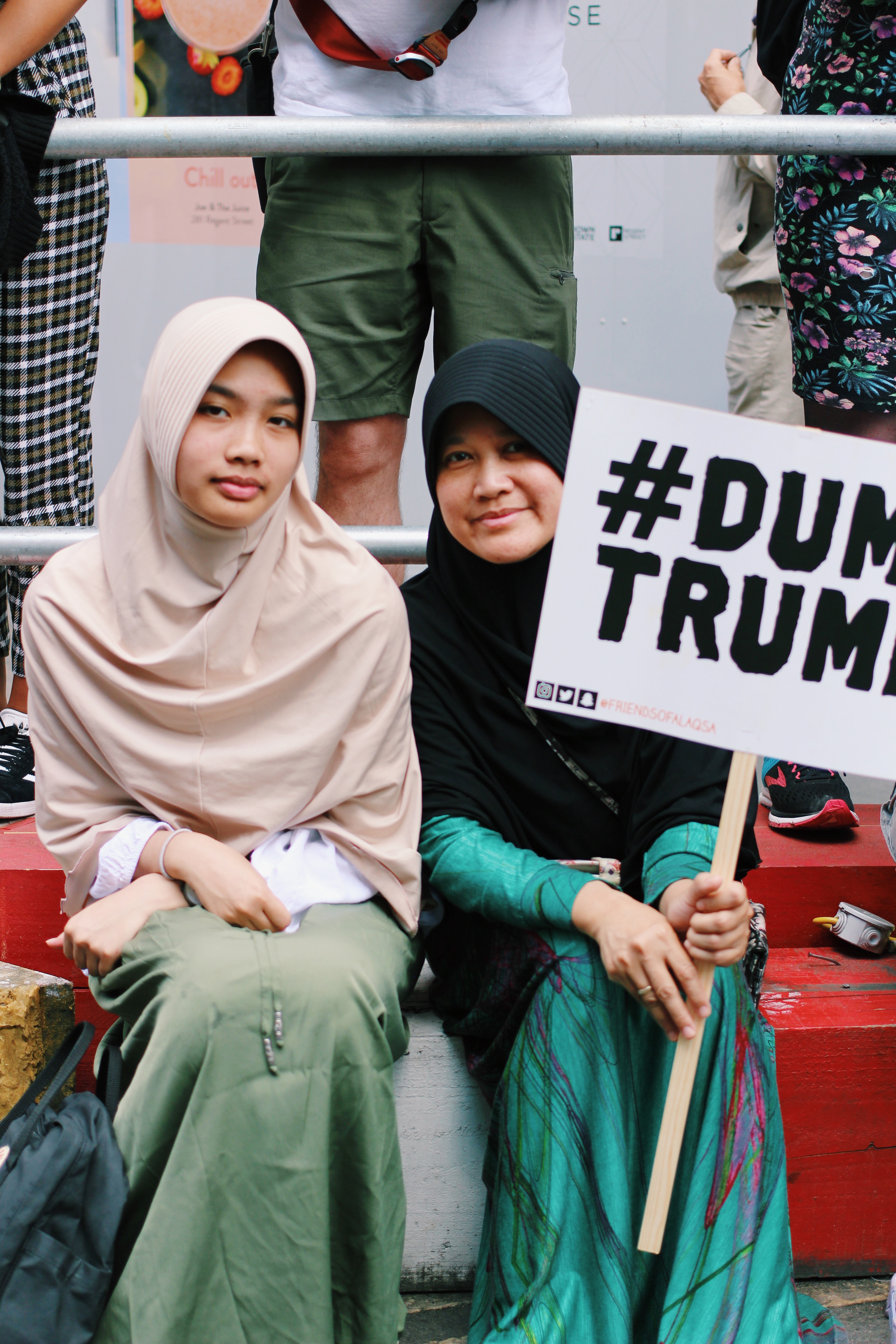 This year also saw Muslimahs Resist Trump bloc which kicked off with a banner drop over Westminster Bridge on Thursday.