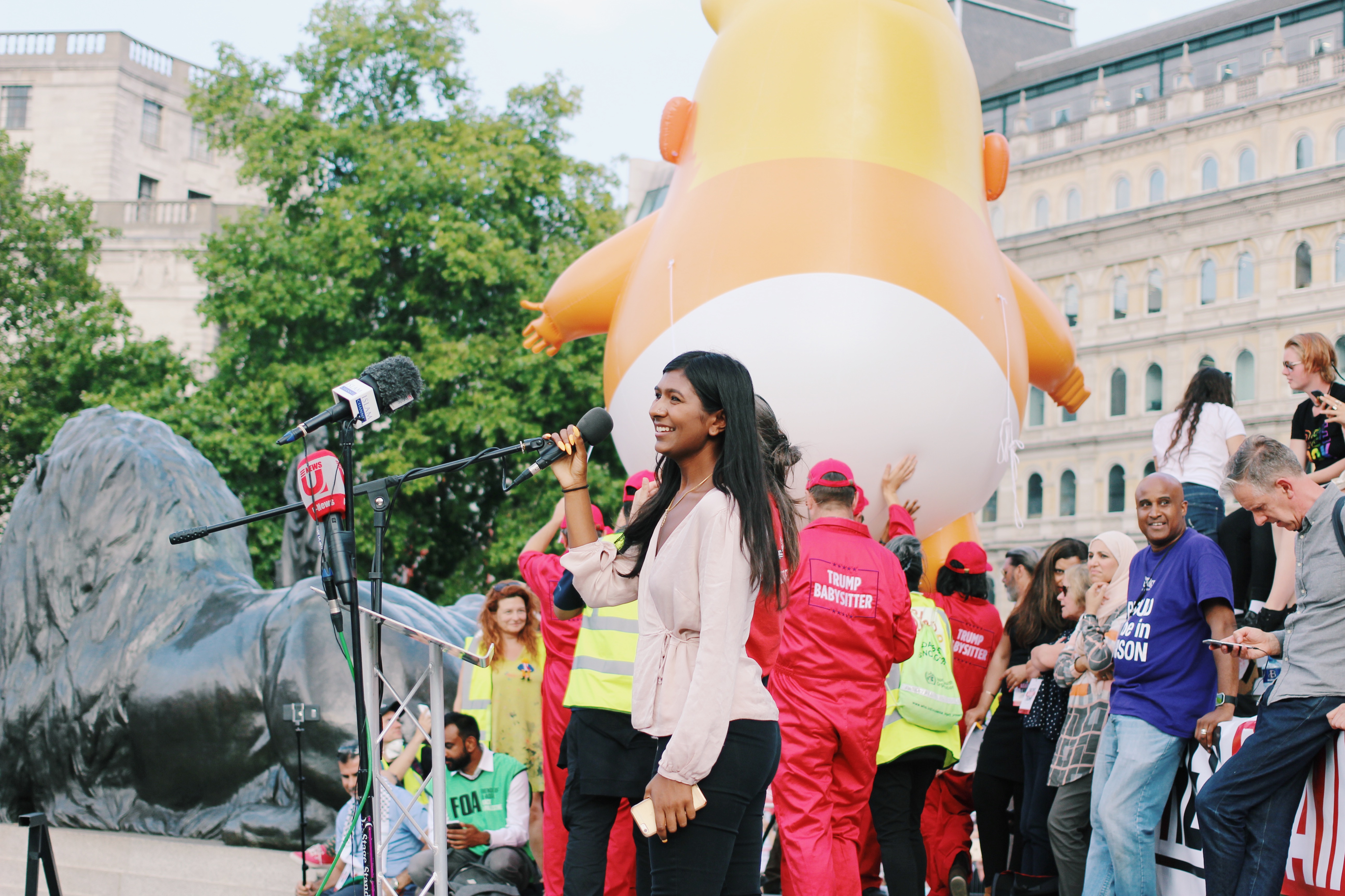 Friday 13th saw thousands of people come together to protest in the streets if London against Trump’s visit to the UK. The protest saw the infamous baby trump which came into existence after activist Leo Murray raised £16,000 to pay for “Project Trump Baby”, an inflatable version of the president in a diaper accompanied by ‘Trump babysitters’. The rally saw a number of speakers and performances at Trafalgar Square. Amongst those were Jeremy Corbyn, David Lammy, Ash Sarkar (who recently took down Piers Morgan on live TV), Lowkey, Maz Saleem and Malia Bouattia.