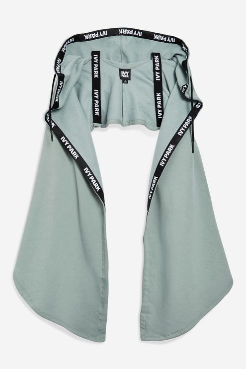 The Summer is all about pretty pastel outfits, and light materials, to keep the heat at bay, but often at night, the temperature decreases considerably, and often those incredible summer days, turn into not so incredible summer nights when feeling a little chilly. We have fallen in love with this dusty green, sporty Ivy Park hoody from Top Shop, perfect to sling over your shoulders. Keeping warm with style. The cotton scarf is fitted with shoulder straps to complete the look.