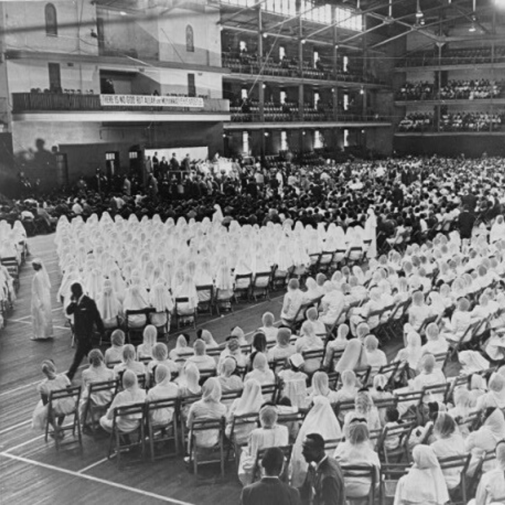 “Beginning in 1913 with the founding of the Moorish Science Temple of America by Noble Drew Ali, the Black Muslim movement emphasized the unique role of Islam as the “true religion” of the black community and its role in fighting white supremacy in the United States. Fusing religion and black nationalism, the movement grew with the rising influence of the Nation of Islam (NOI), founded in 1930 by W.D. Fard and sustained by Elijah Muhammad thereafter. NOI leader Malcolm X attracted national attention, but also received criticism for promoting black supremacy.”