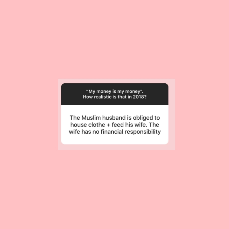 “They are entitled to receive marital gifts, to keep present and future properties and income for their own security. No married woman is required to spend a penny from her property and income on the household. She is entitled to full financial support during marriage.” Source