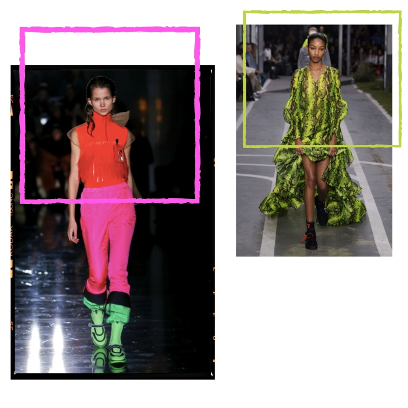 The trend first became popular after designers such as Miuccia Prada (Prada) and Virgil Abloh (Off-WhiteTM) introduced these colours onto the runway during Fashion Month last September. The neons have since trickled down into high street stores such as Zara and Topshop proving they weren’t going anywhere other than straight into our wardrobes anytime soon. Paired with a full black attire or more traditional prints such as checks or snake, neons surprisingly go with pretty much everything – including themselves – making it only inevitable that they stick around a little while longer.