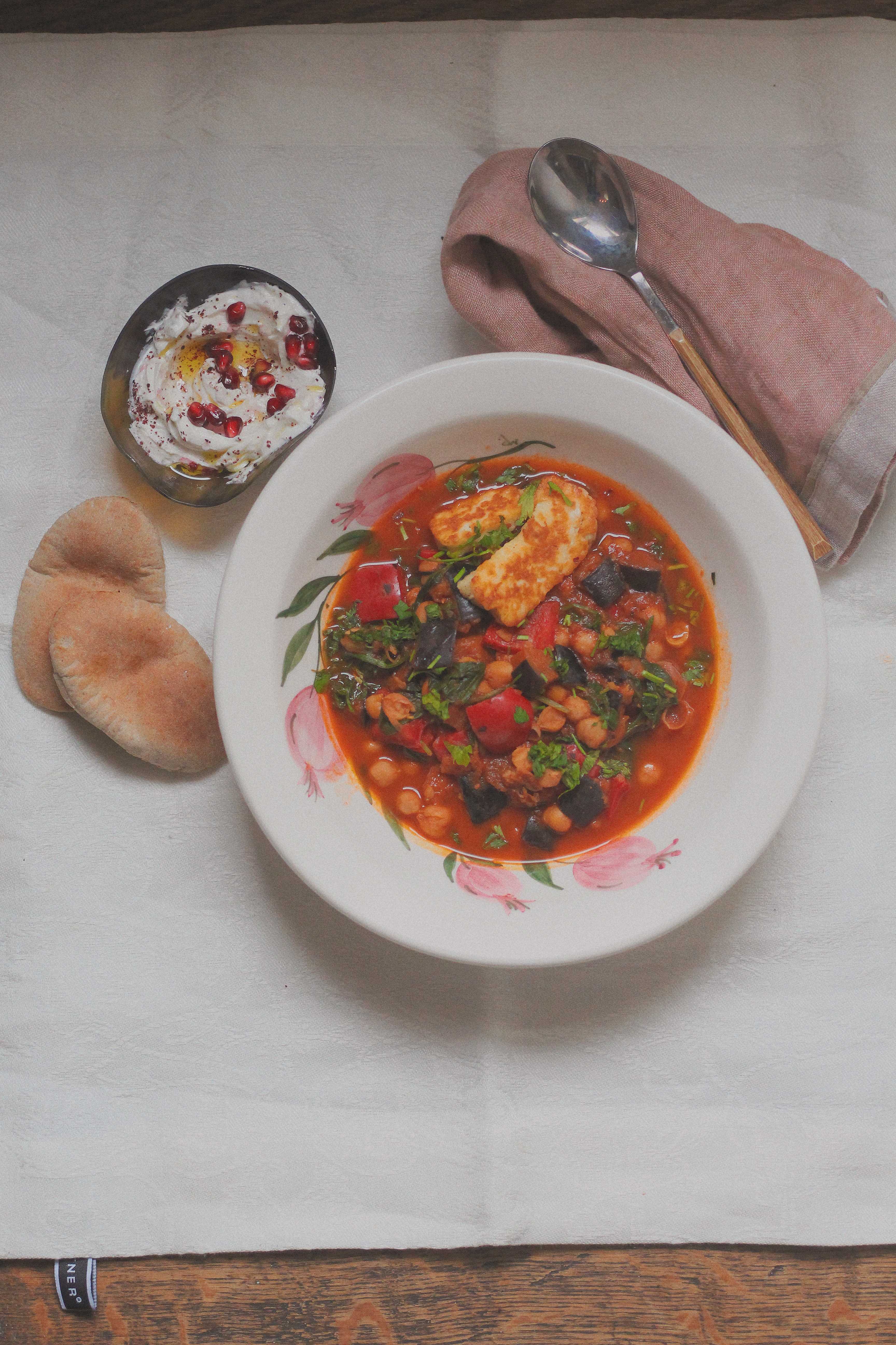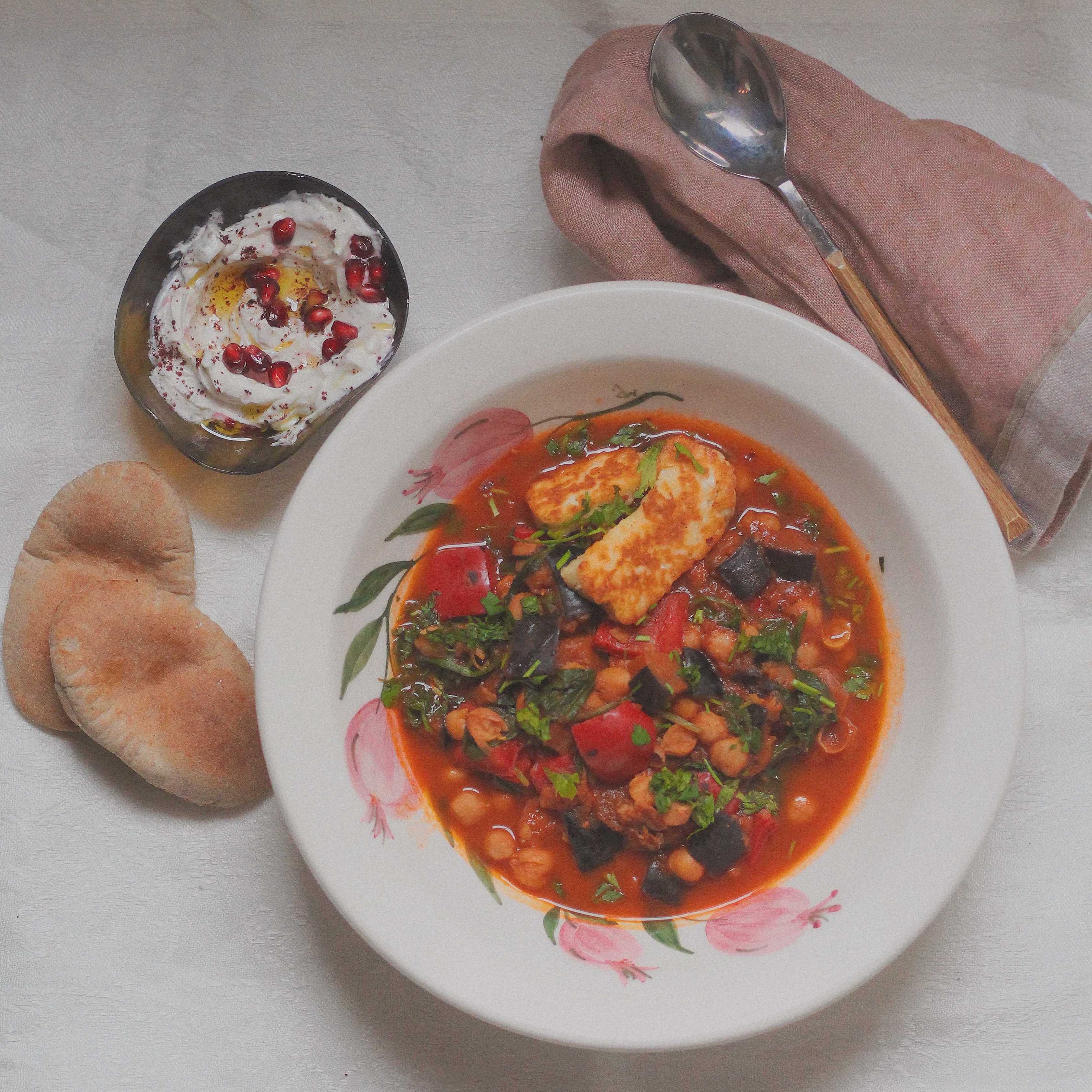 Aubergine, Chickpea & Chargrilled Halloumi Stew