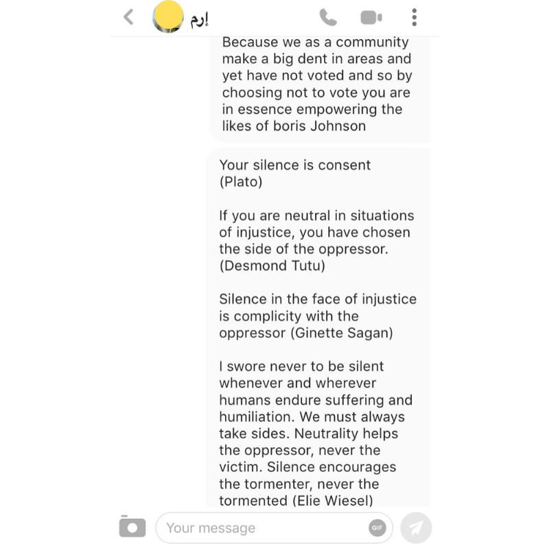 Whilst people have taken to campaigning on social media, one Muslim man, 29-year-old Raafaye Ali, has decided to take an alternative and somewhat unorthodox approach. Ali has taken to Muslim dating apps to literally slide into DMs of Muslim women urging them to vote. He’s also been going the extra step to ensure that those with apathy towards voting are told why their vote matters. Genius or annoying?