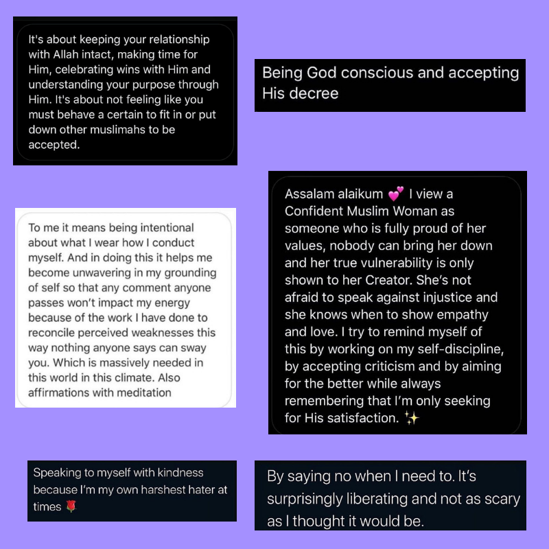 We asked the elite Amaliah community on Twitter and Instagram how they are working to becoming or become Confident Muslim Woman which contributes to us living our best lives Insha Allah.