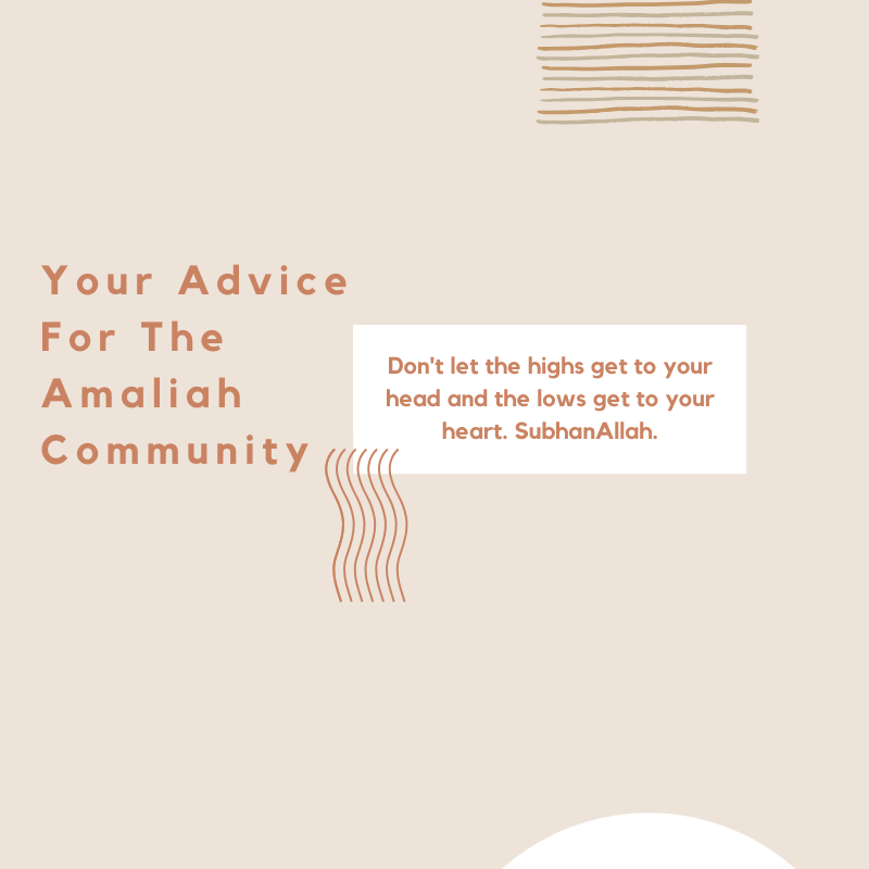 We took to Instagram at the begining of February to invite the Amaliah community to share their advice with other sisters in the community, there’s something about seeking advice from other women in the community…it’s tried and tested for starters and often shared with the best of intentions! Here’s a round up of what we read…What advice would you give to other Muslim women in the community?