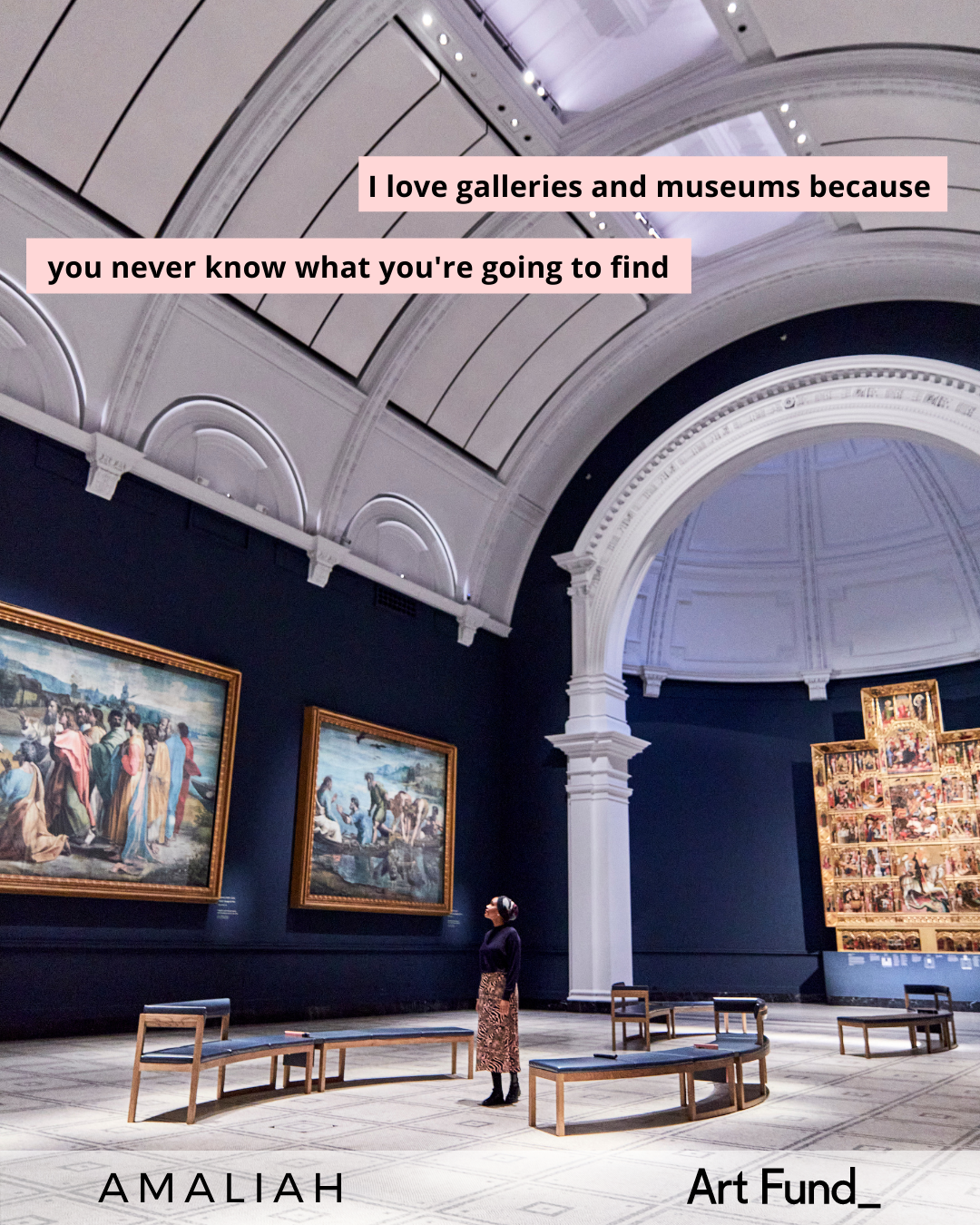 Amaliah sat down with Tasnim in the Victoria & Albert Museum as a part of our ‘Spaces to_’ campaign with Art Fund where we explored how two Muslim women, Tasnim and Khadija, use galleries, museums and art spaces to regularly seek inspiration and find a peaceful getaway from London’s busy streets. Tasnim uses galleries to immerse herself in a new book or to research more about the authors and history behind the books she reads, we sat down in conversation to hear more.