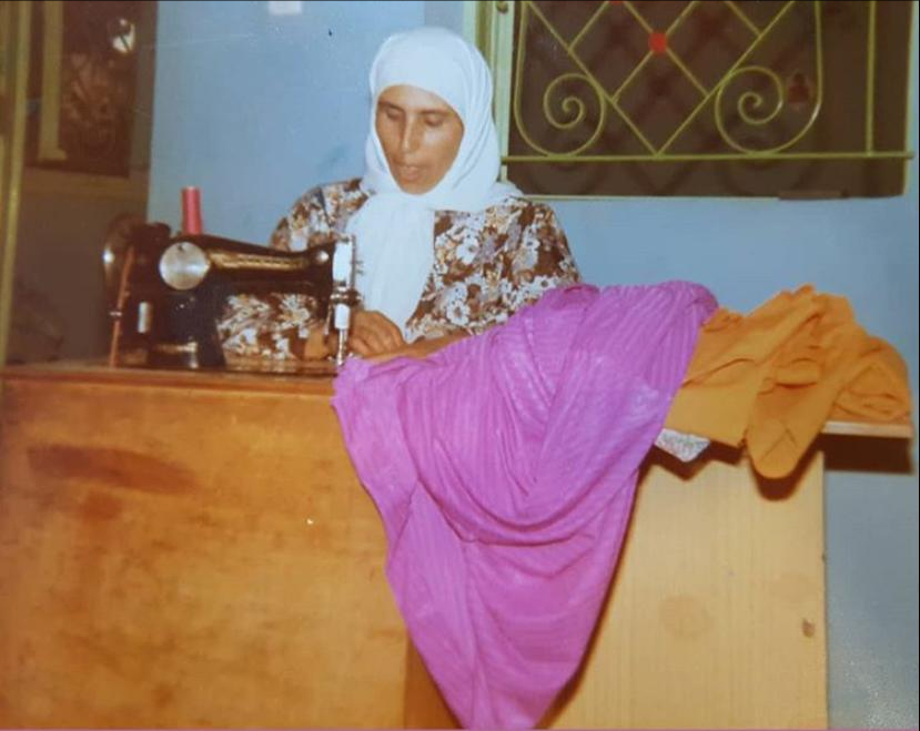Muna’s Teta sewing using her Singer sewing machine table
