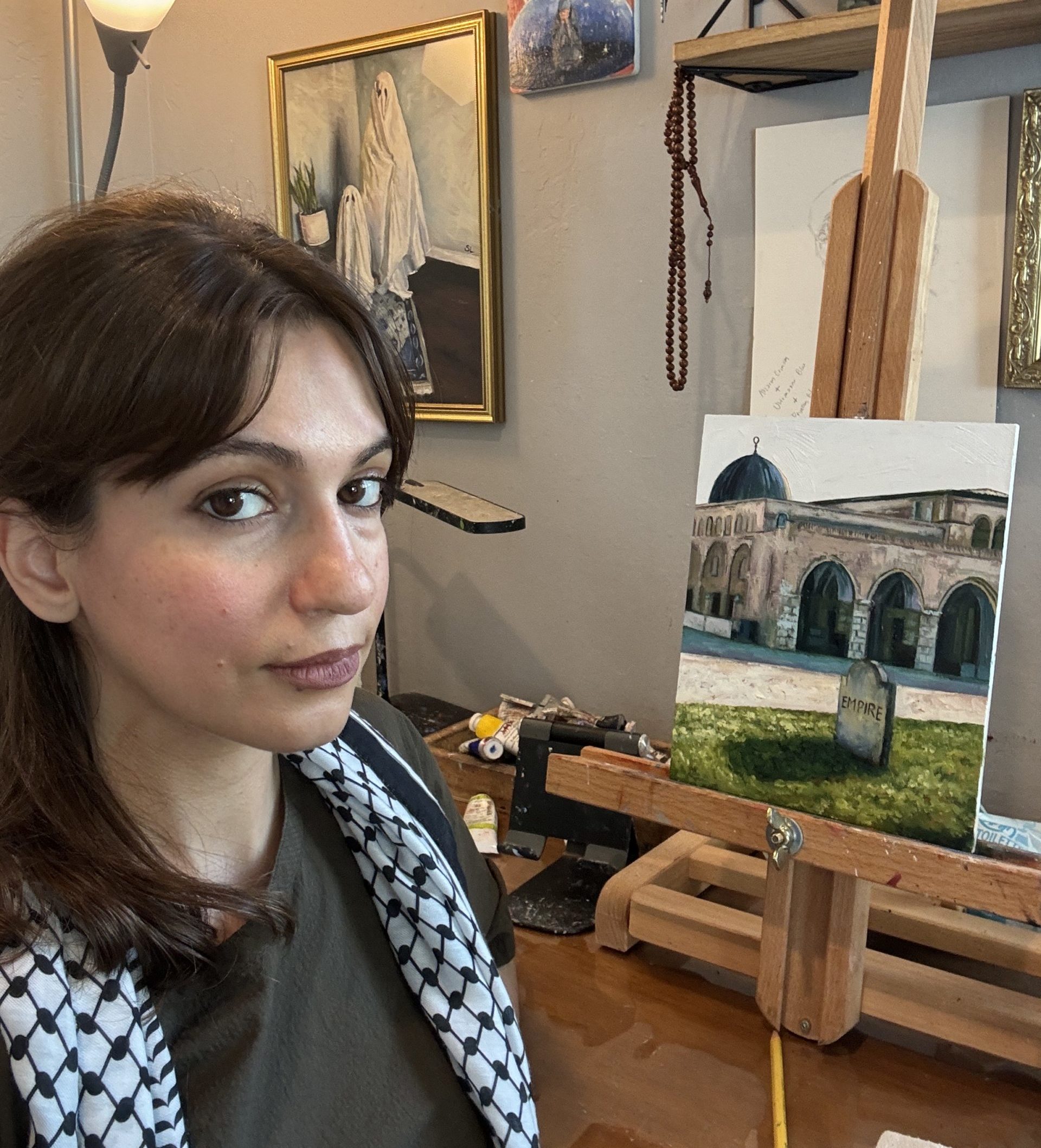 Born to a Pakistani father and Jewish-American mother who converted to Islam, Safia was raised in a largely-white community of Western Maryland. She first looked at art as a hobby, inspired by the women in her family. However, it was her studies into Islam and the Middle East that caused her to pick up the paintbrush again and brought her to where she is today. Amaliah spoke with Safia over Zoom from her quaint art studio to explore her career so far, inspiration for her work and advice for other aspiring artists.