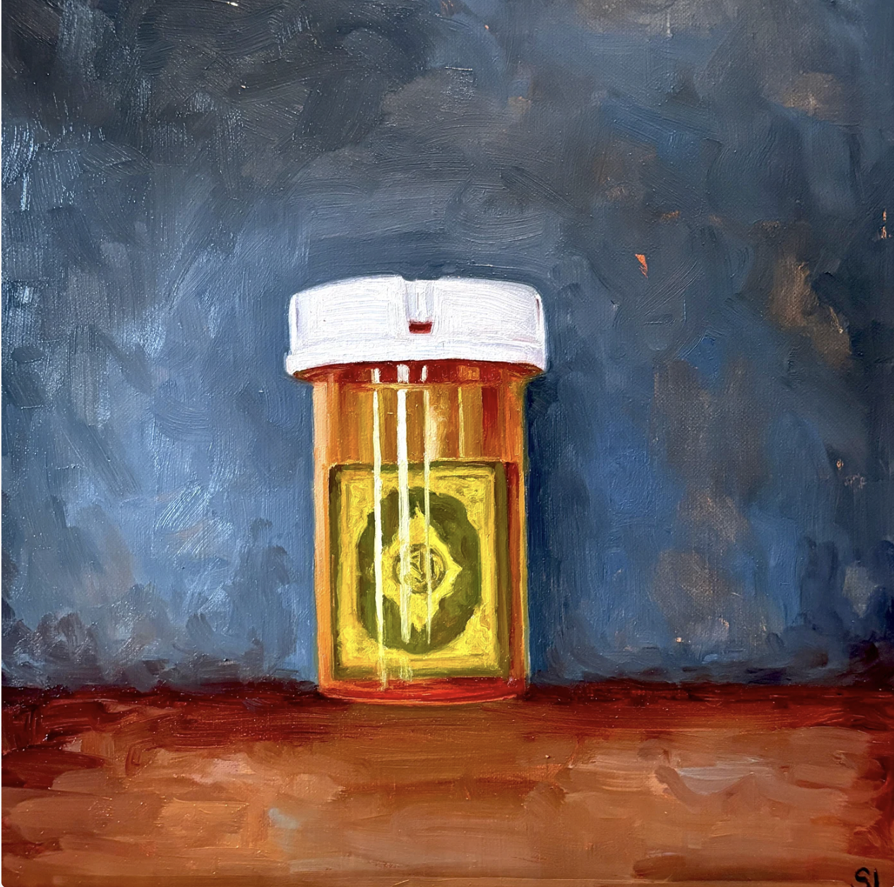 I also love my piece titled ‘Wellness’, which depicts a Qur’an in a prescription bottle. That one is very personal to me because my father is a psychiatrist, and I remember seeing an empty pill bottle on my kitchen counter late at night, and I had a mini Qur’an that I put inside and made it into a painting.