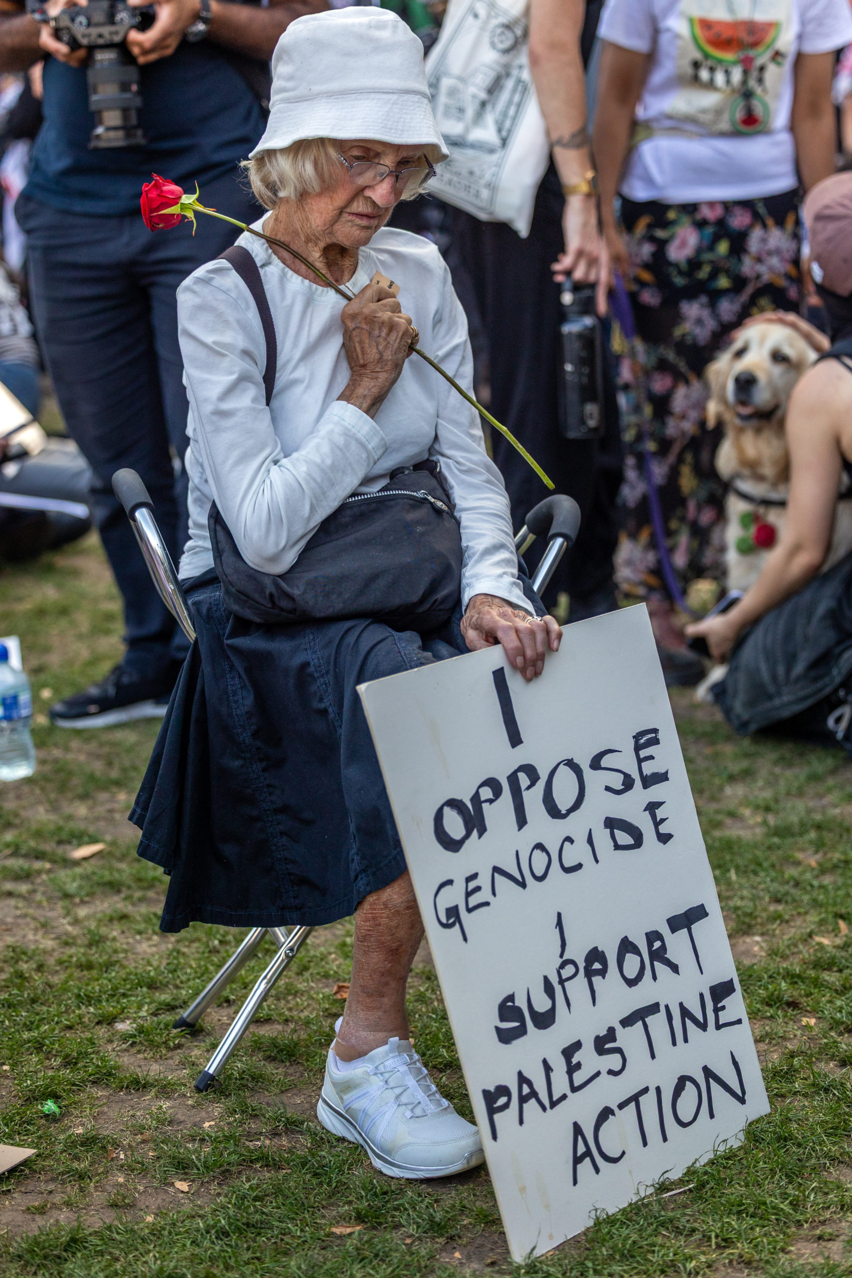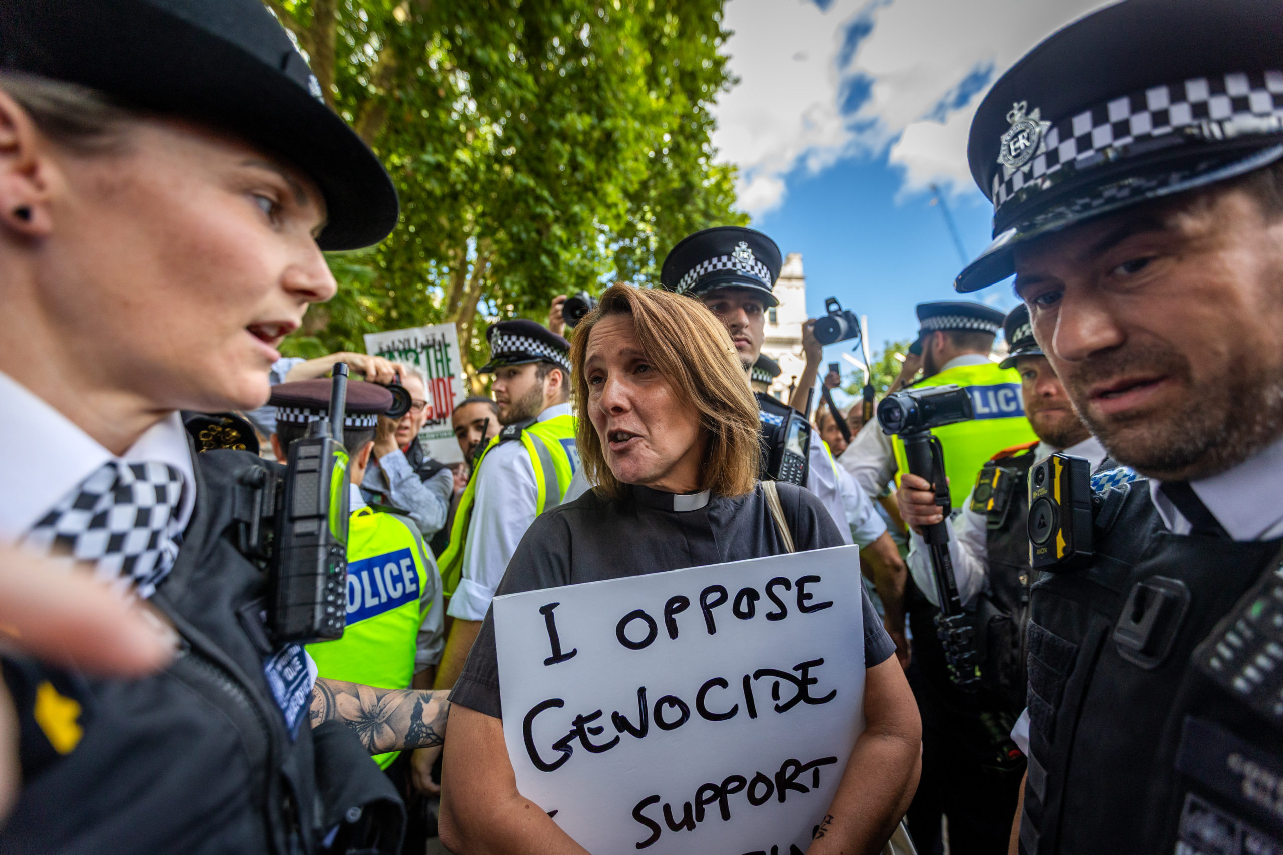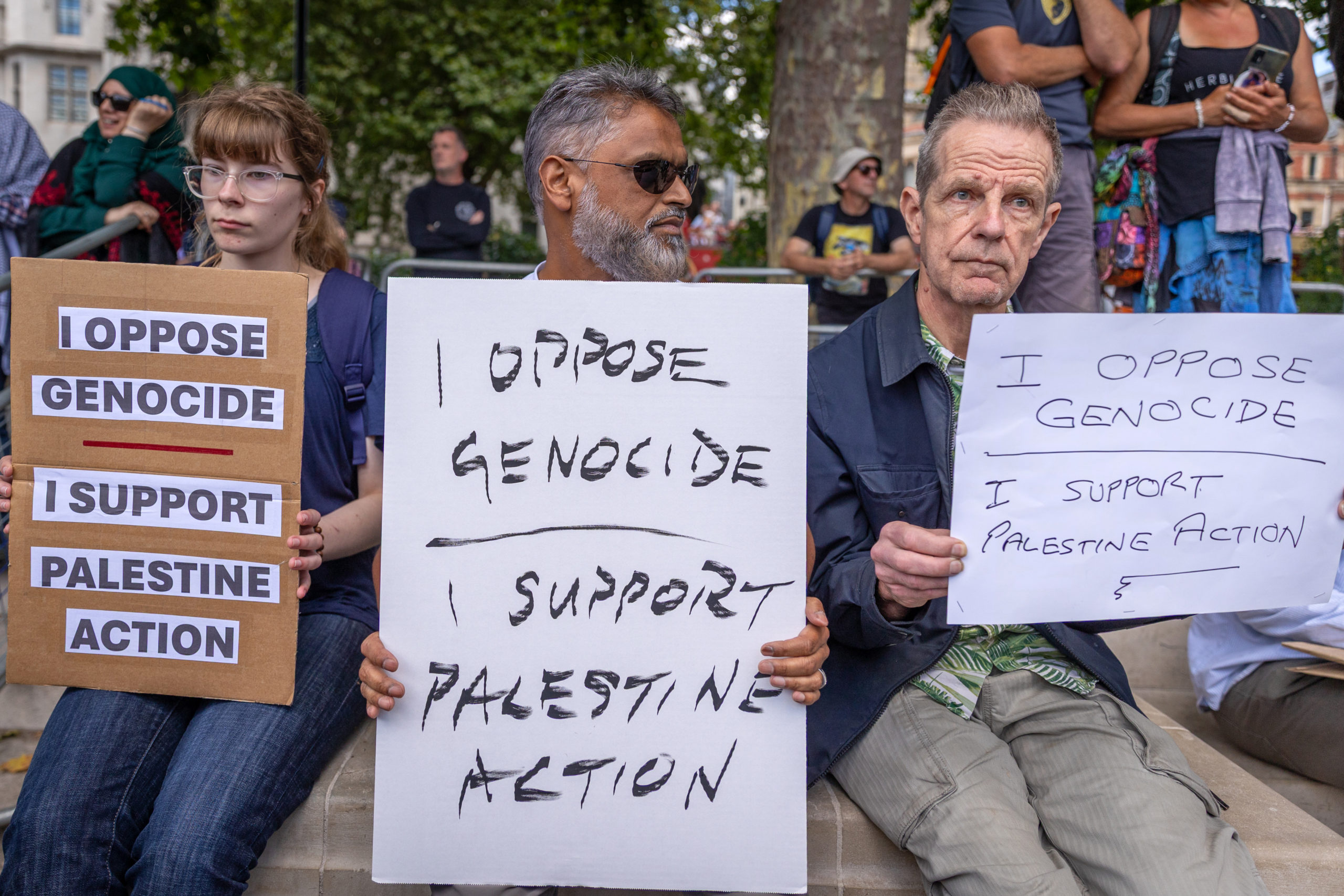 By acts of terrorism, of course, I refer to the act of silently holding a sign that reads “I oppose genocide. I support Palestine Action.” There have been three times more arrests under terrorism legislation this past month than all of last year. These laws do not make us safer as they claim to, but in fact enable unchecked policing, mass surveillance, and criminalisation of dissent.