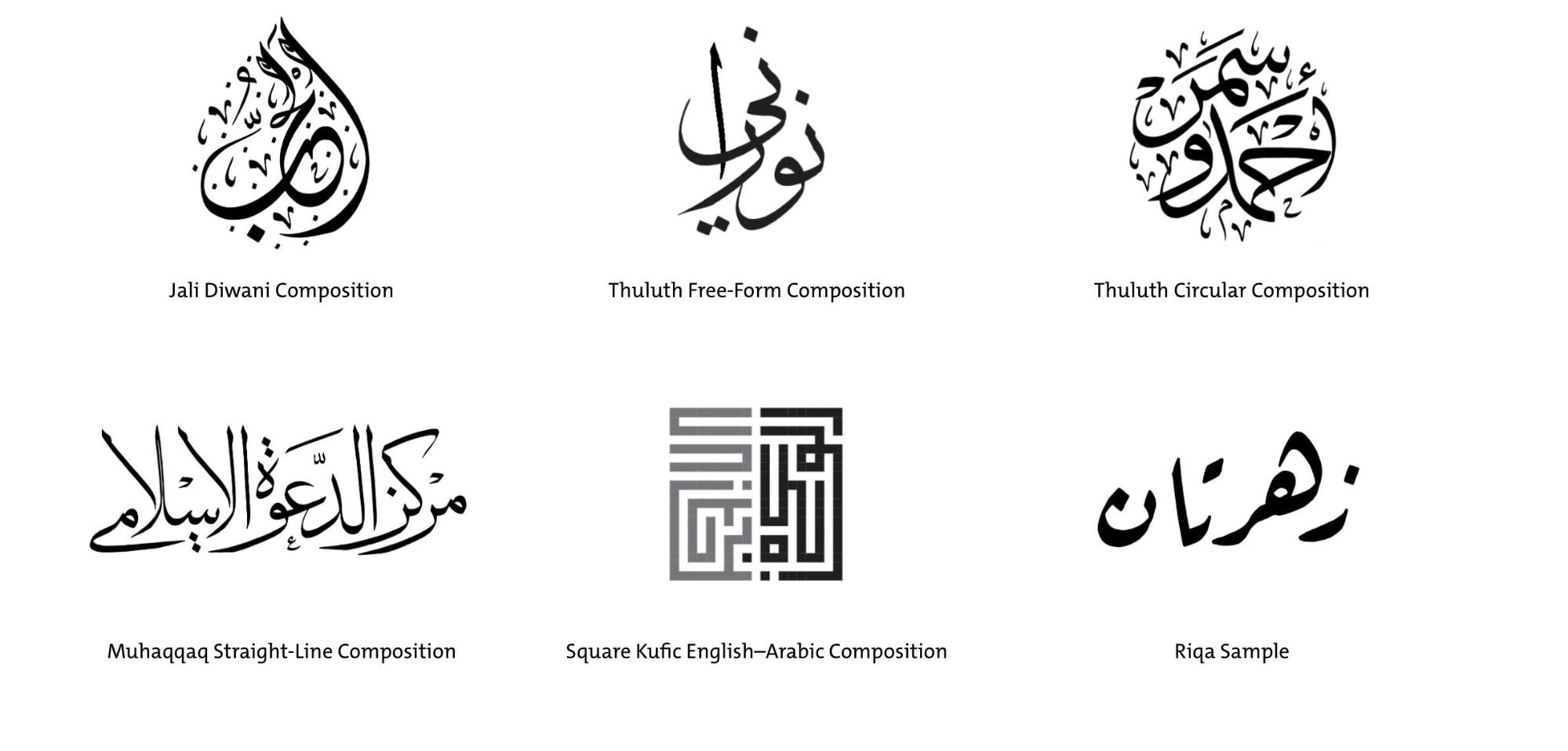 Many styles of Arabic calligraphy have evolved greatly over time. “One of the earliest and most well-known styles is Kufic, which is more angular and structured,” says Faizoliya. This universal script originated in Kufa, Iraq. It’s a beautiful but unusual style compared to what we often see today, consisting of geometry. However, due to the long time it takes to write in Kufic style, and because it doesn’t fit well on small pages, the Arabs developed their style of writing, such as Thuluth and Diwani.