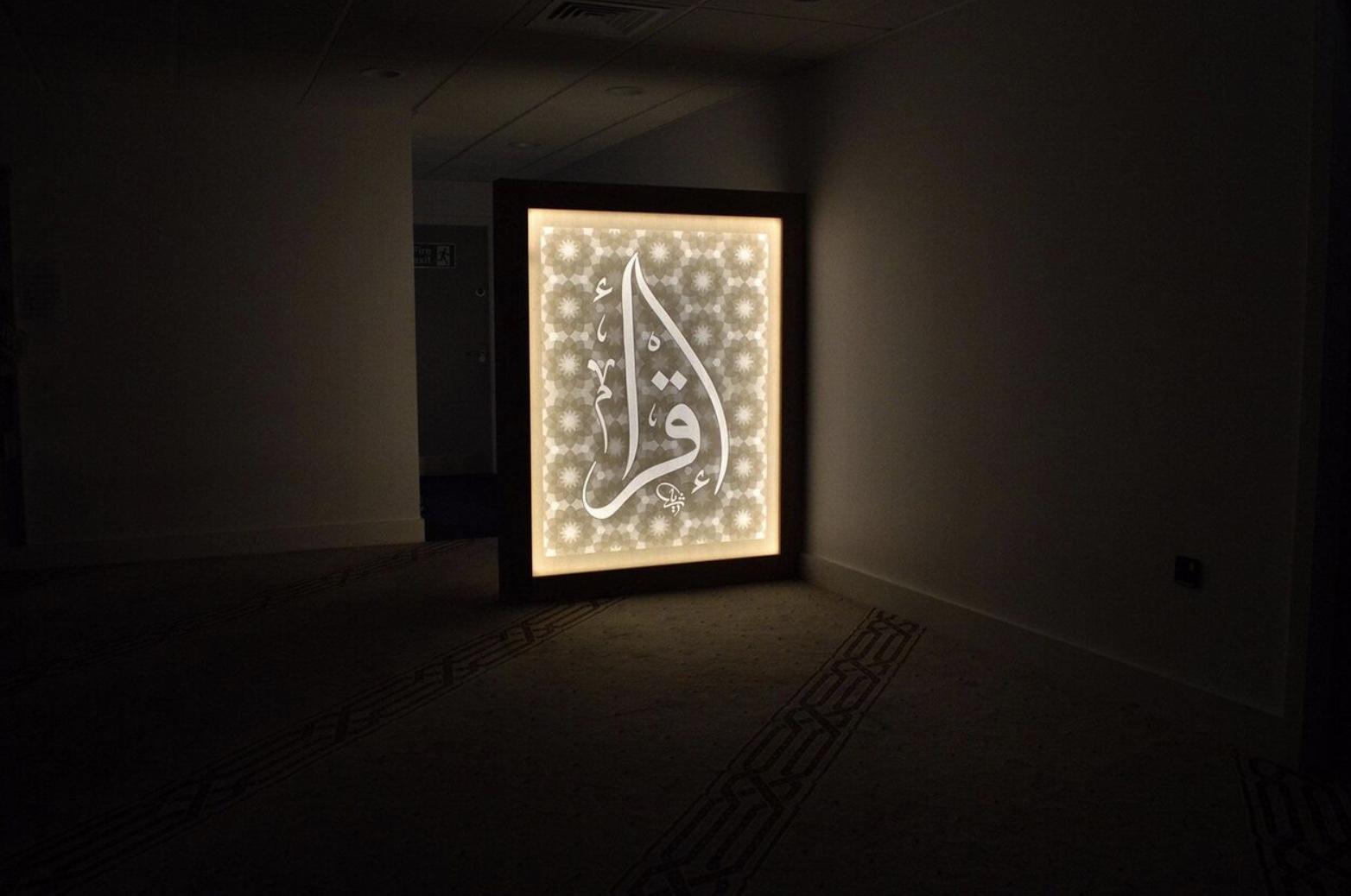 Arabic calligraphy surrounds us more than we realise. This 3D design sits in the female prayer room at City, St George’s University of London.
